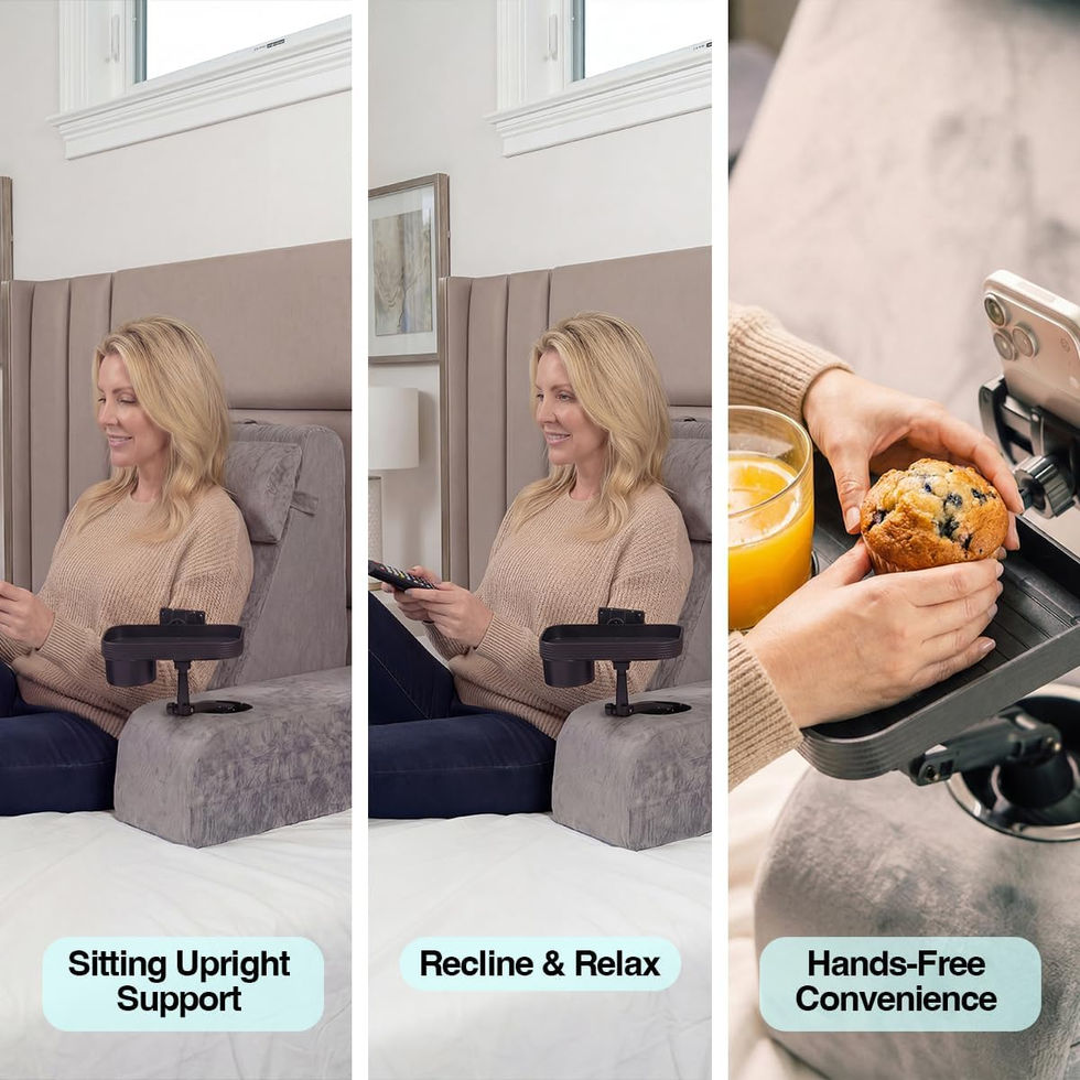 - ☕📱 Adjustable Cup Holder Tray with Phone Support The detachable tray provides a stable surface for drinks, snacks, phones, or small items, keeping essentials within reach while you read, watch TV, or relax in bed.